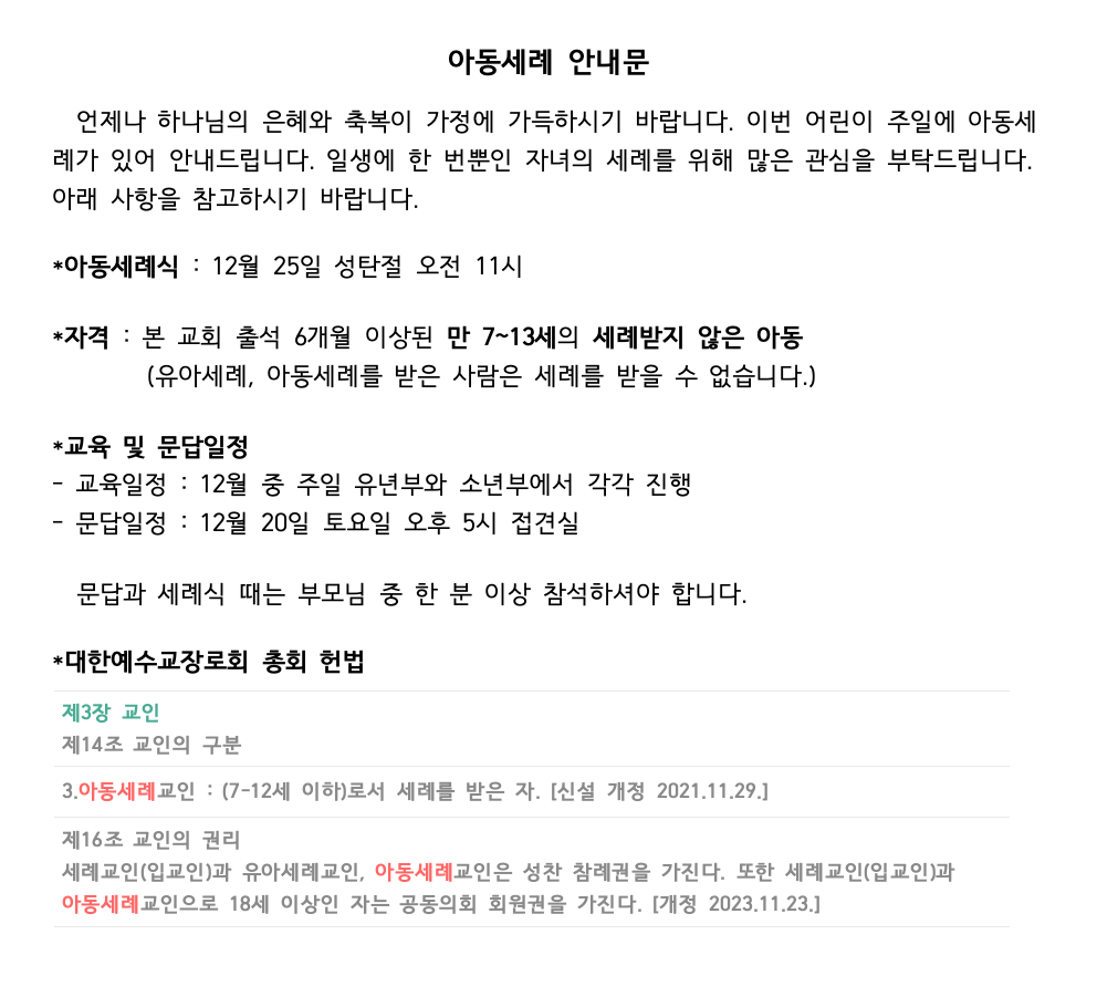 아동세례 웹 신청서