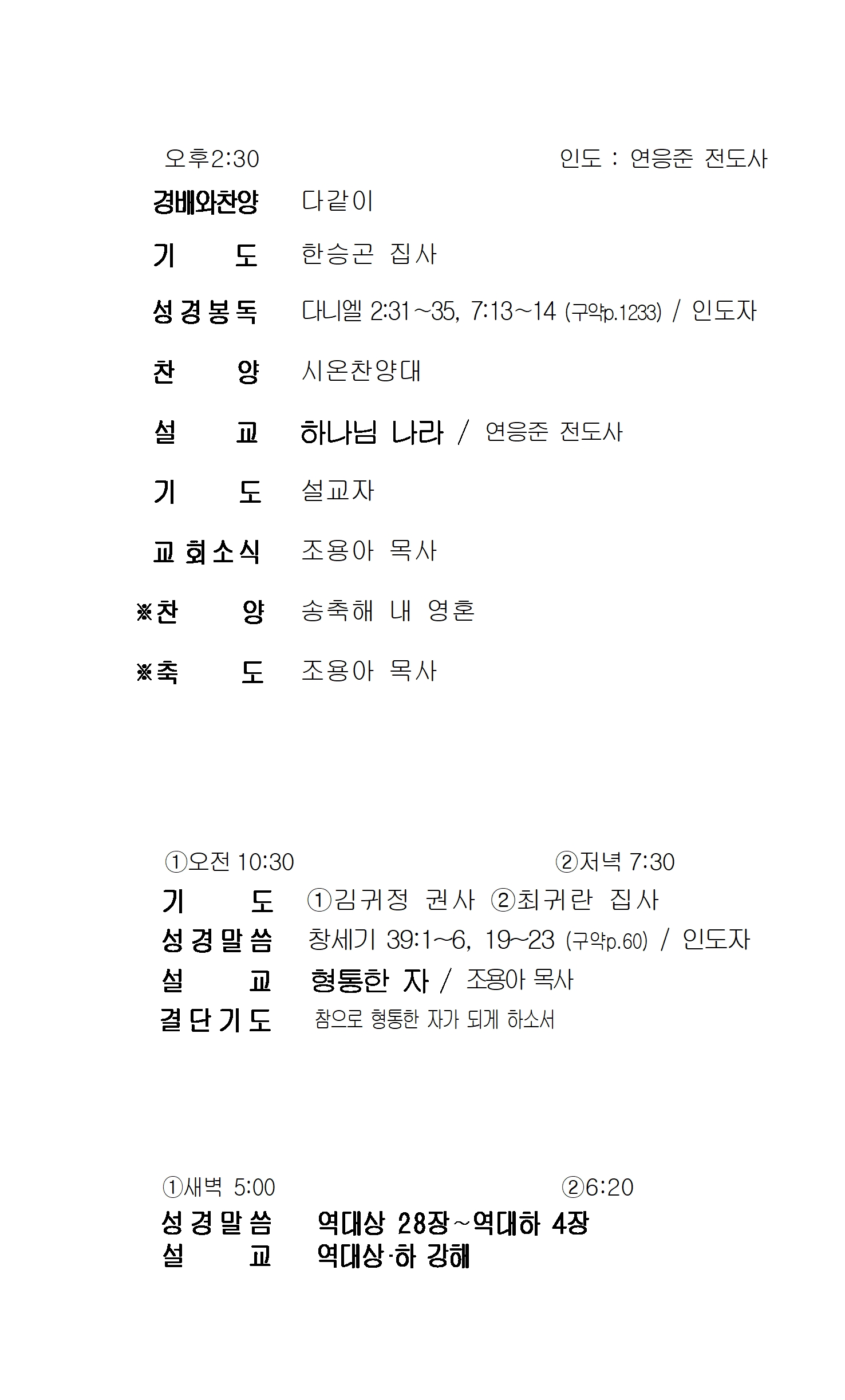 섬기는 사람들(교역자 및 직원)